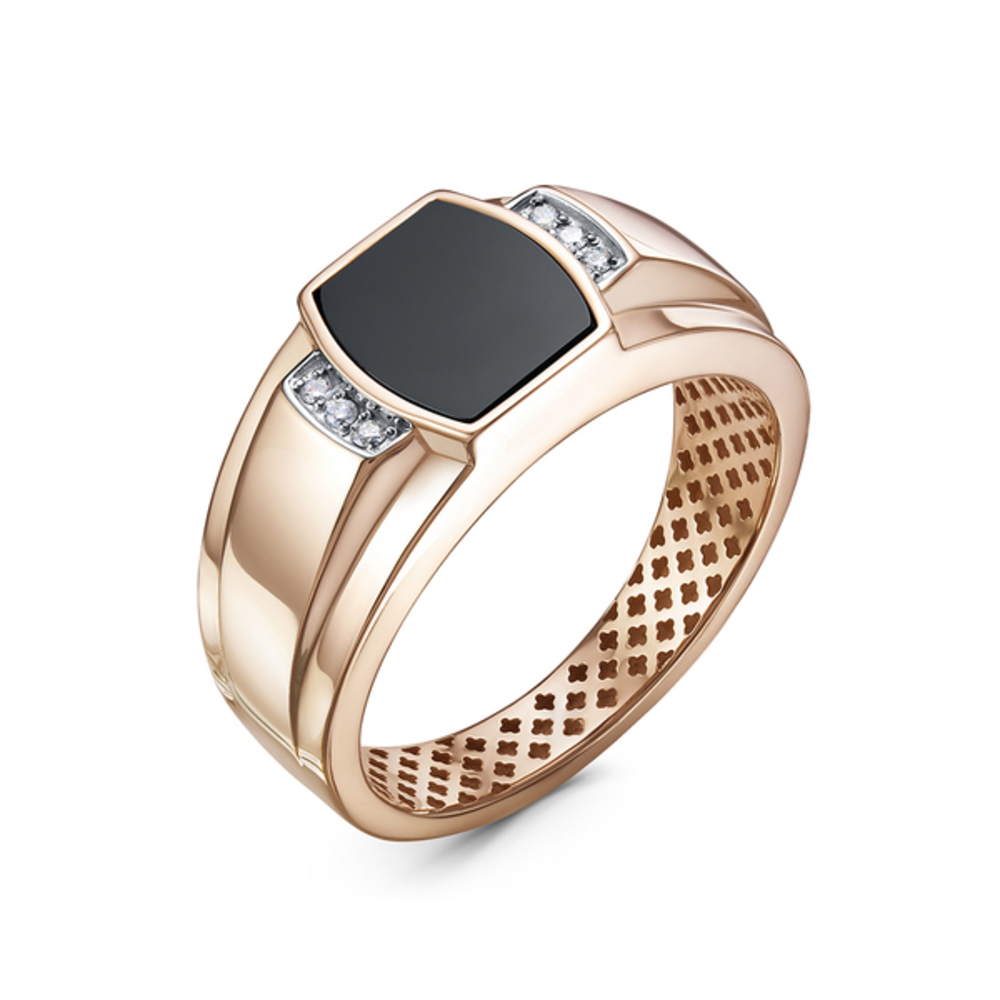 (1 Оникс 7,5х4,5 - 1,715 ct.; 6 фианит Круг - 0,102 ct.), р.21.0, вес:4,61г, арт:040020