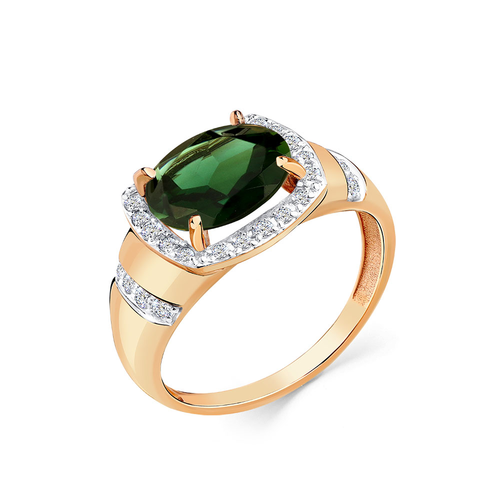 (1 Турмалин синт Ов 1,515 9*7 12 Фианит Кр 0,198 1,25 16 Фианит Кр 0,157 1), р.18.0, вес:2,26г, арт:01-3-500-1901-011 -