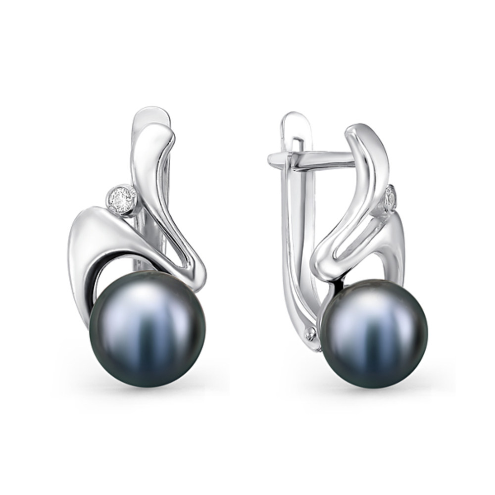 (2 Фиан Круг 1.5 бесцв. недраг. камень 0.011, 2 Жемчуг культивир кабашон 3/4 7.5*8.0 Черный 1.164), р., вес:3,1г, арт:28049S2