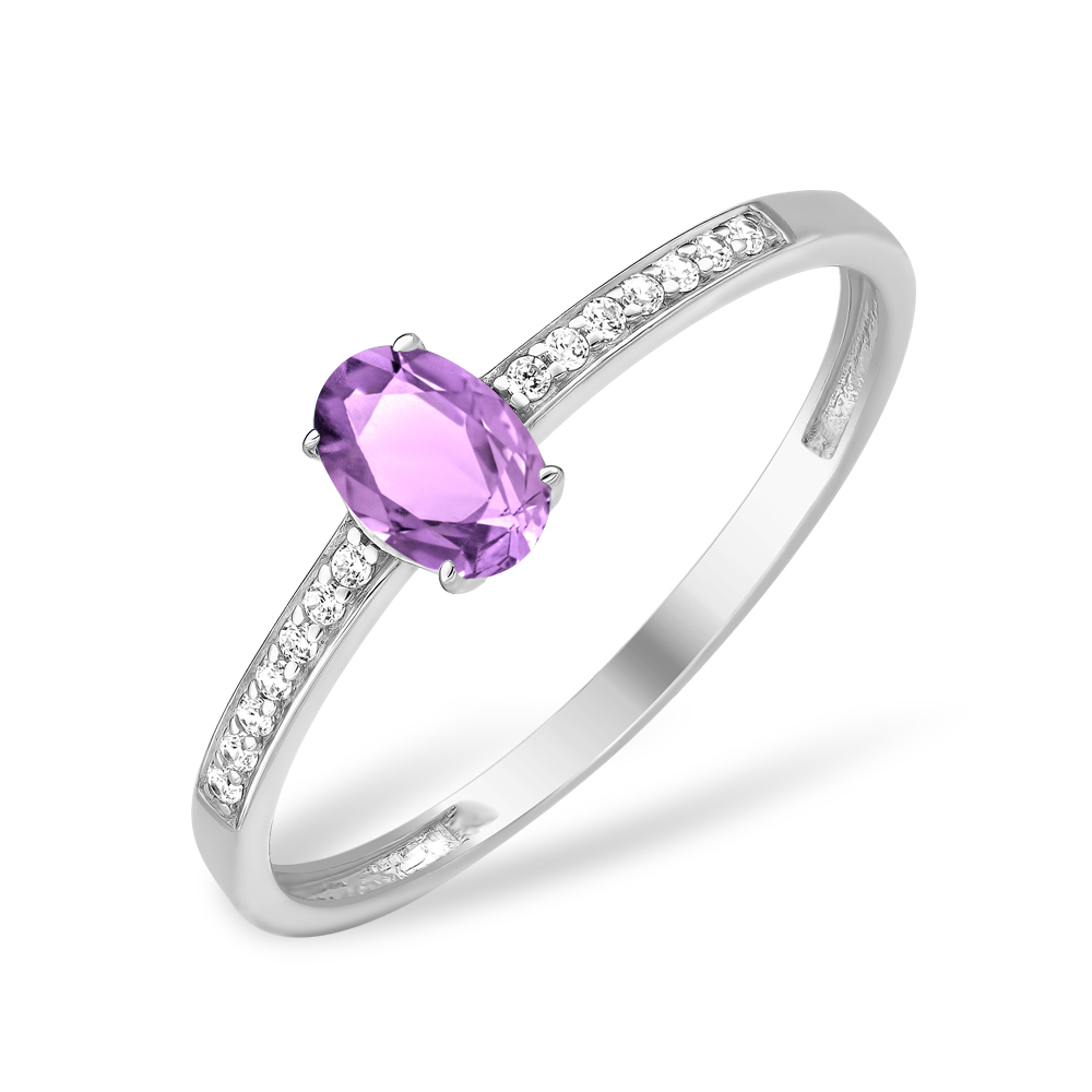 (1 Аметист овал 6,00*4,00 0,384Ct ,14 Фианит Круг 1,00 0,025), р.17.5, вес:1,05г, арт:10210113198-5