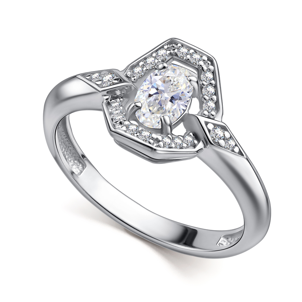 (Горный хрусталь, Фианит, Фианит), р.18.5, вес:2,52г, арт:01-4849/00ГХ-00
