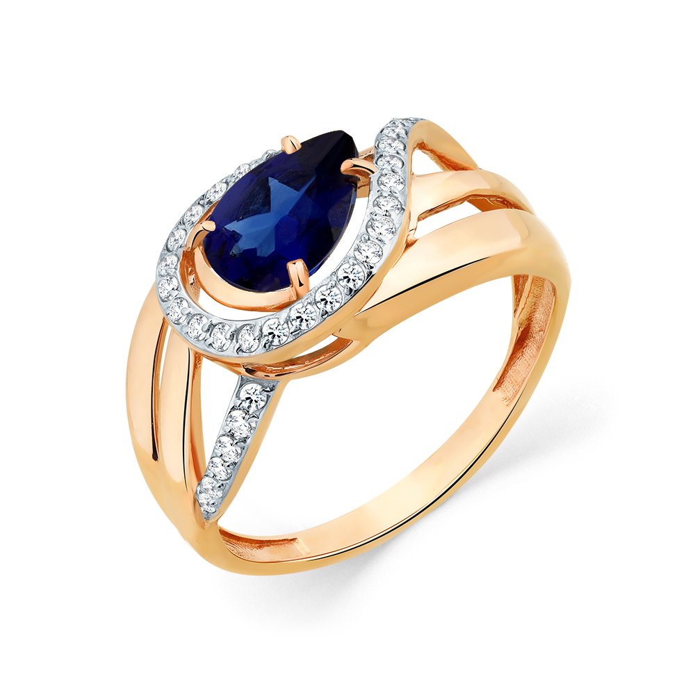 (34 Фианит Кр 1,0 0.310, 1 Корунд синт сапф Гр 8*6 1.265), р.19.0, вес:2,45г, арт:01-3-593-1501-011