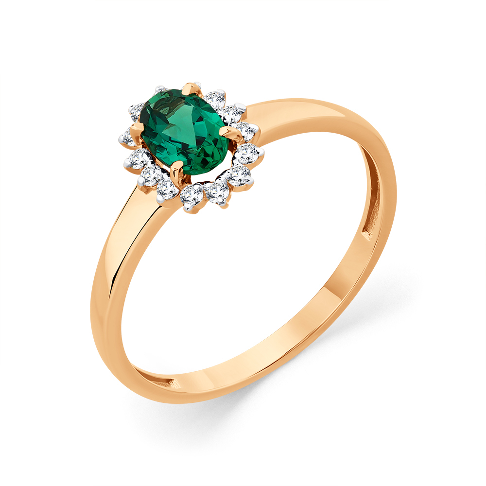 (14 Фианит Кр 1,25 0.231, 1 Изумруд г/т Ов 6*4 0.380), р.15.5, вес:1,32г, арт:01-3-628-1401-011 -