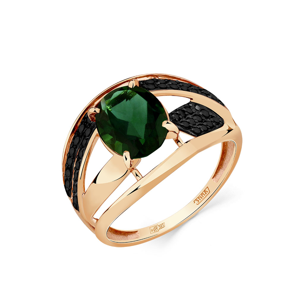 (43 Фианит Кр черный 1,0 0.258, 1 Турмалин синт Ов 9*7 1.610), р.19.5, вес:2,67г, арт:01-3-512-1905-012